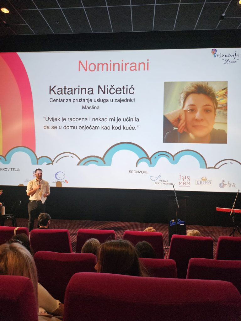 Na dodjeli priznanja uz samu odgajateljicu tetu Katu podršku su joj pružili i neki od korisnika Centra Maslina. Kako ona podržava njih kroz život, tako su oni njoj uzvratili podrškom na samoj dodjeli.